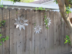 Metal flowers I designed and cut out with a plasma cutter after finishing a welding class.