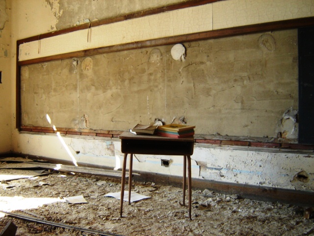 While strolling, I use that term loosely, through this school with the debris on the floor and the paint peeling from the ceiling I wondered, “Should I be breathing right now?”