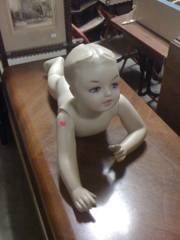 I enjoy wandering through antique/vintage stores because, well, it’s fun. I love rummaging through the items and imagining how they were used and wonder about the people who used them. I guess the best way to explain why I enjoy it is to say that my two favorite History Channel shoes are American Pickers and American Restoration; I appreciate the interest and enthusiasm people on those shoes have for old stuff. More often than not when I’m wandering through a place I come across some really cool stuff and sometimes I come across creepy stuff; like mannequins.