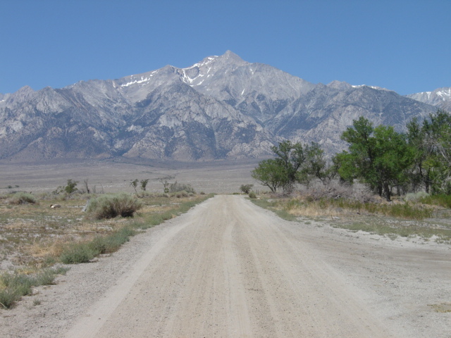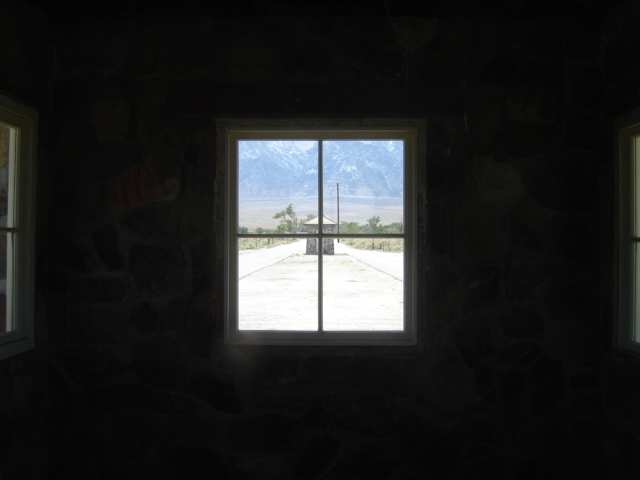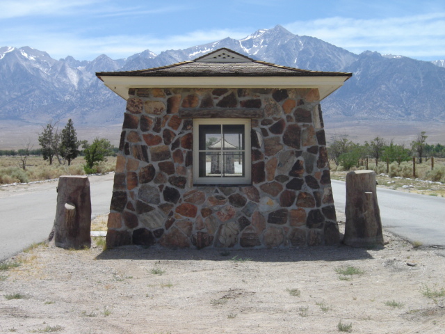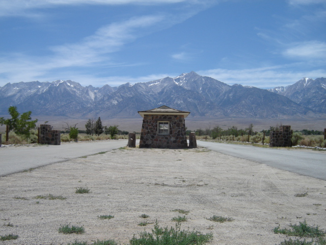 A couple of summers ago in preparation for teaching U.S. History, I visited the Manzanar National Historic Site, a.k.a. Manzanar War Relocation Camp. This was one of several locations througought the west where Japanese Amercans were relocated during WWII. Manzanar is located, ironically, south of Indepence, CA on highway 395 east of the Sierra Nevada. The eastern side of the Sierra Nevada is starkly different than the western side; it is much more desolate and dry. While visiting Manzanar I was struck by many things not the least of which was the landscape. Though dry and windy it was captivating.