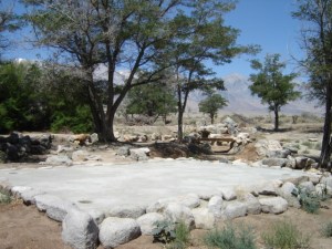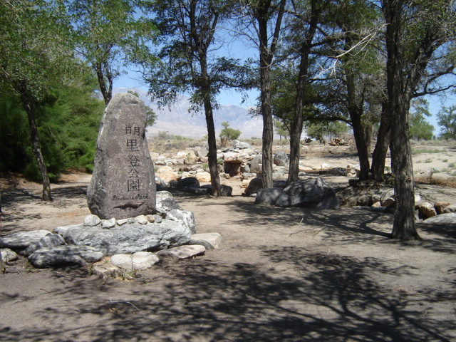 I’m not sure if it’s irony, ok, I’m going out on a limb and saying it is. What I’m talking about is the fact that while Japanese Americans were interred at Manzanar they turned the Warl Relocation Center into one of the most agriculturally productive areas in the entire Owens Valley. Additionally the created sevearl parks within the camp the largest was Pleasure Park. Pleasure Park had a large pagoda, pond and aritficial stream. I was awe struck once again at the internees ability to create a liveable life in the War Relocation camp. When I visited the National Park Service was in the process of reconstructing Pleasure Park. I don’t remember what the Japanese characters translate to, any help with that would be appreciated.