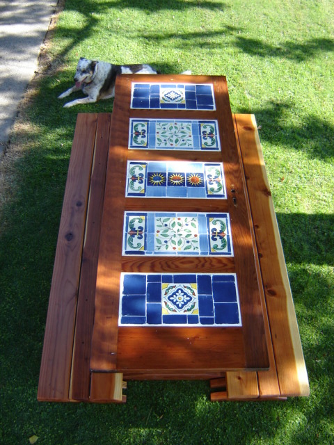 It takes a lot of work to strip the paint, sand the doors, cut the wood, set the tile, then stain and varnish one of these suckers. This morning I was having my breakfast at one of my gorgeous tables and Fat Java decides to do a standing stretch and place her paws on the end of my beautiful piece of functional art, extend her claws in cat stretch ecstasy and SCRATCHED MY TABLE!!!! (Insert Sideshow Bob grumble here.)
