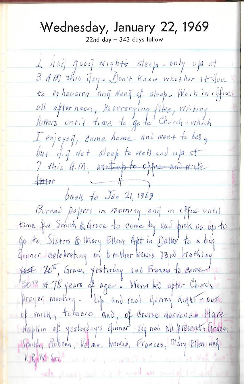 Apparently in 1908 my grandfather didn’t have anything to write about on this day. So on to January 22, 1969:
