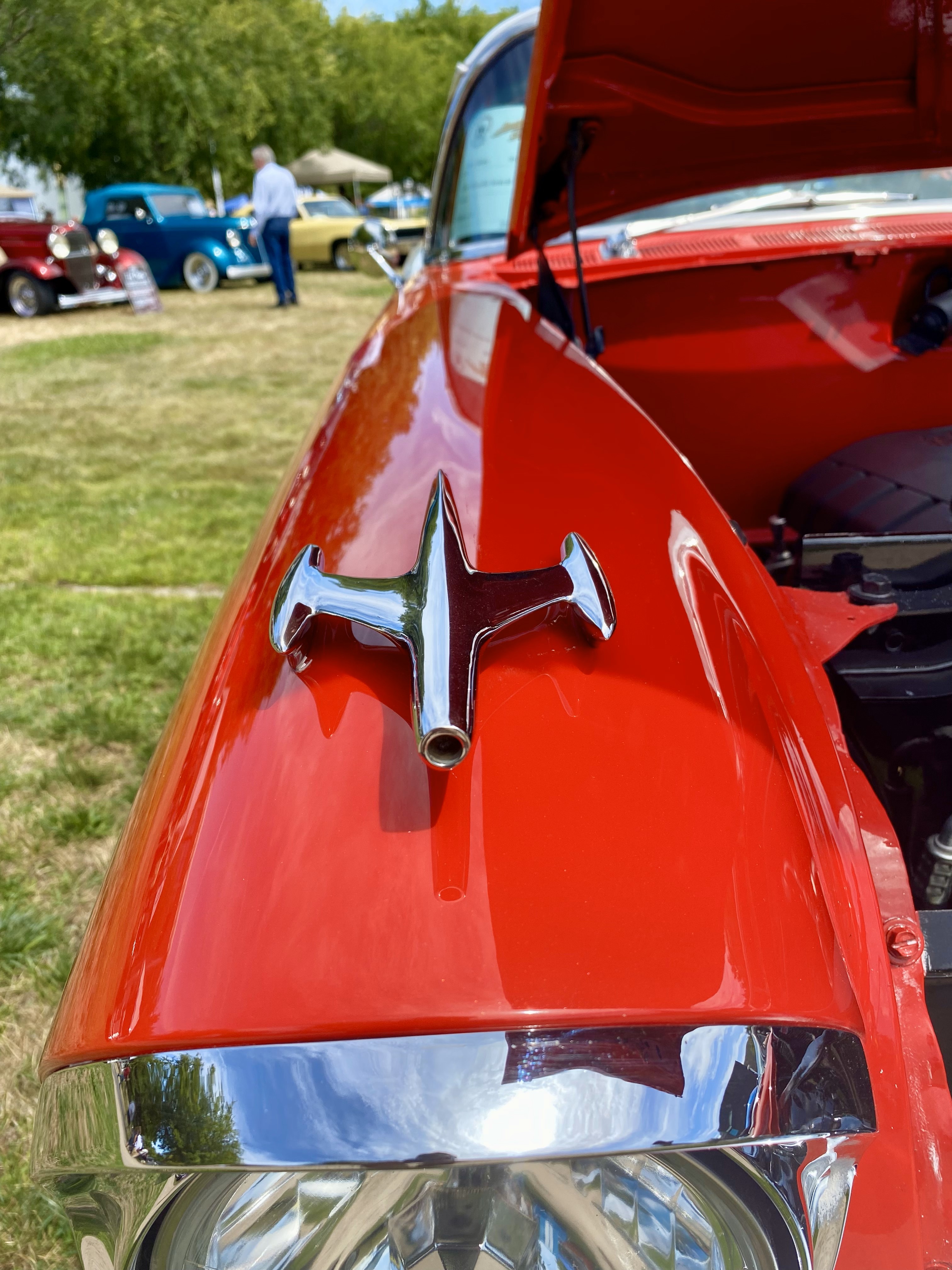 Each time I go to the Graffiti car show, or any car show for that matter, I appreciate the bling and/flourishes on older cars since newer models seem to lack them. I’m aways enamored with hood ornaments.