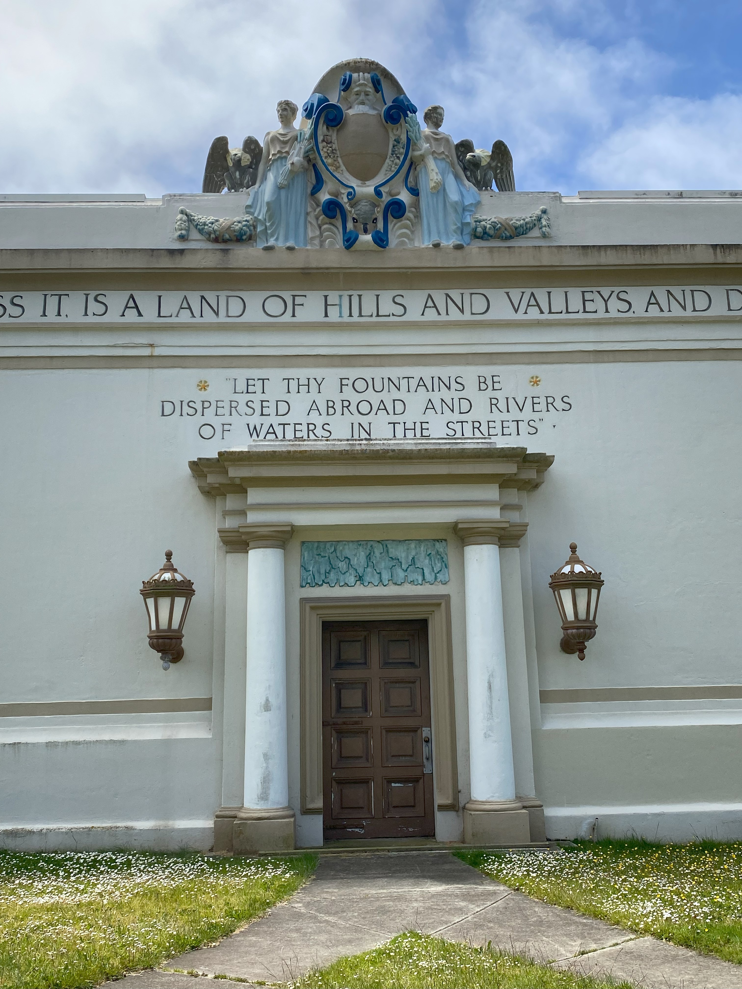 I appreciated the Art Deco flourishes but I now I have more questions. Like, what the heck does this quote mean in upper left photo: “BUT THE LAND WHITHER YE GOTO POSSESS IT IS A LAND OF HILLS AND VALLEYS AND DRINKETH WATER OF THE RAIN OF HEAVEN”. Also, what does the warning on those doors mean? “DANGER CONFINED SPACE” Um, it’s an underwater reservoir. Well, I suppose some people do need warnings about hot coffee too. (Learning about this I am reminded of post I wrote years ago about water temples https://geowoodward.com/2013/06/21/adventuring-in-california-water-gold/ )