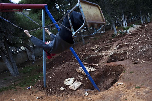 A boy plays in a park converted to a cemetery in Idlib, north of Syria, Saturday, March 3, 2012